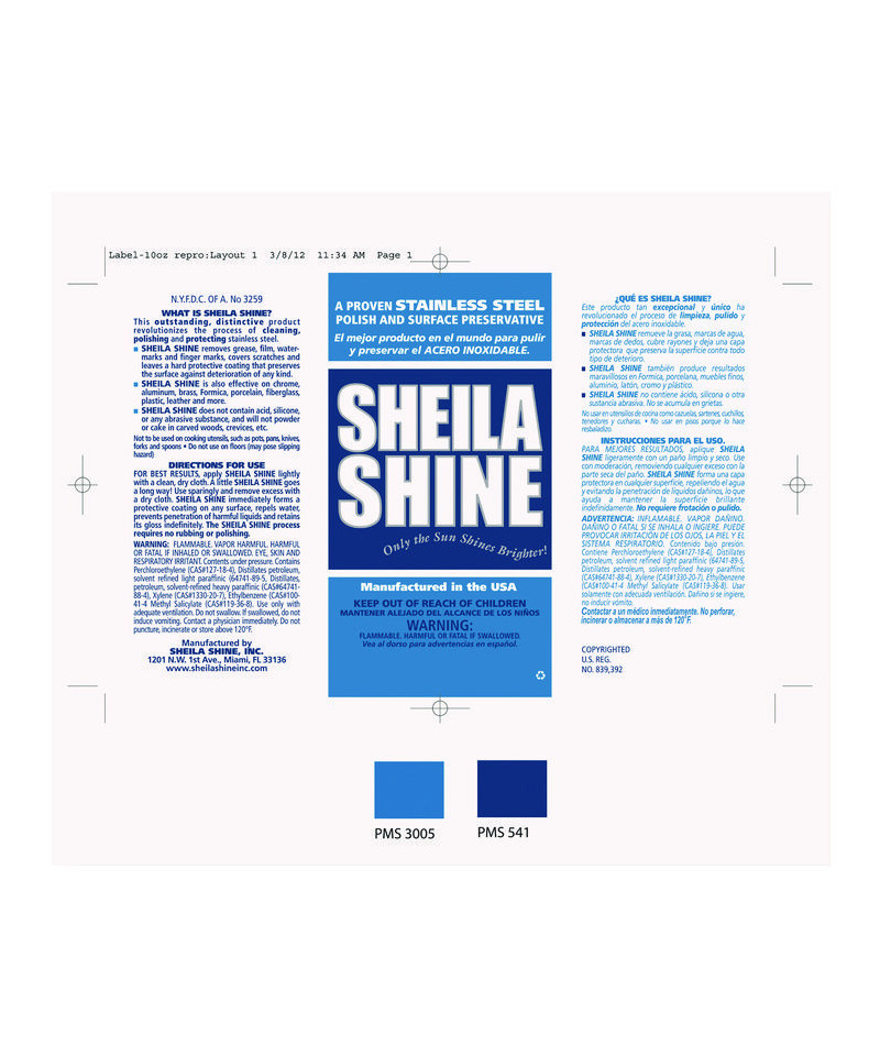 Replacement label for Sheila Shine products. Use to label secondary containers such as spray bottles. Contains instructions for use in English and Spanish.