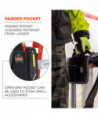 The Arsenal 5301 Ladder Carrying Handle is designed for easier and safer transport of heavy ladders. This ladder carrying handle consists of a padded pocket and three hook & loop straps that safely and securely attaches to heavy ladders for easier, more controlled and safer transport in cramped, tight spaces. The universal size and shape is compatible with A-frame and straight ladders, including fiberglass, wood and aluminum styles with varying rungs, cross bars or gussets (will not work with extension or combination/multi-purpose ladders). The carrying handle is designed to remain conveniently on the back of the ladder when in use, eliminating the need to install and remove the system upon every transport. When the ladder is upright in use, the main pad pocket can be used to hold small hand tools and accessories.