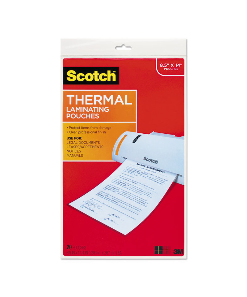 Scotch Laminating Pouches protect documents you handle frequently. They are for use with thermal laminators and create a permanent seal for long-term protection. Pouches are clear to let important information show through. Try other quality products from Scotch Brand for all your needs in the home and office.