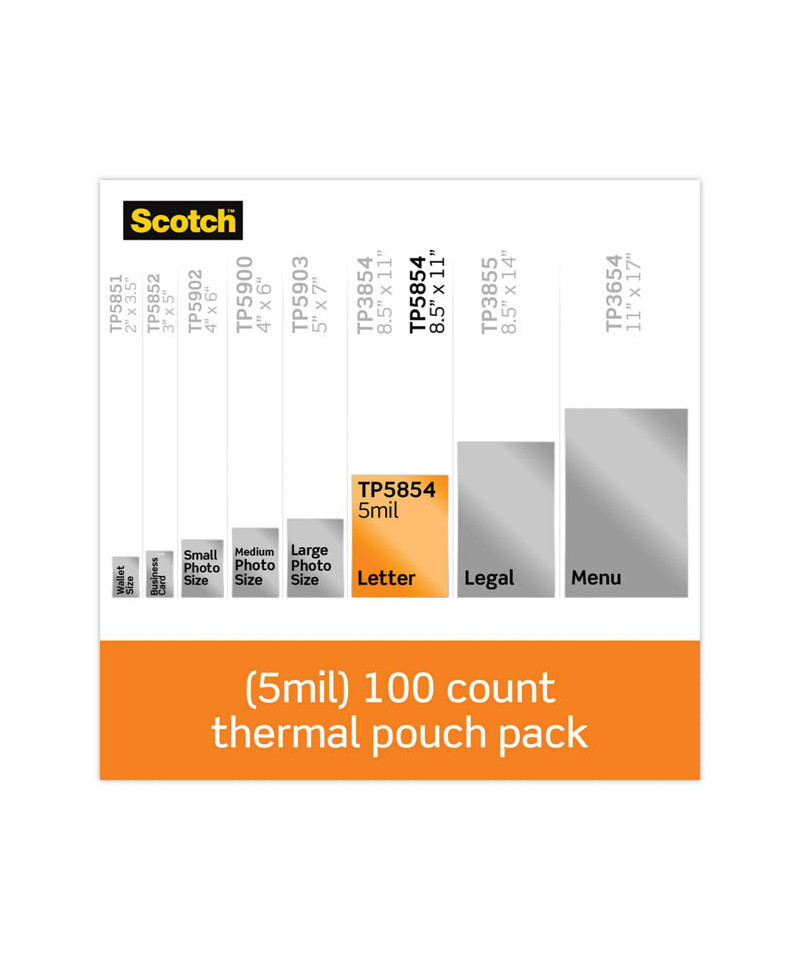 Scotch Laminating Pouches protect documents you handle frequently. They are for use with thermal laminators and create a permanent seal for long-term protection. Pouches are clear to let important information show through. Try other quality products from Scotch Brand for all your needs in the home and office.