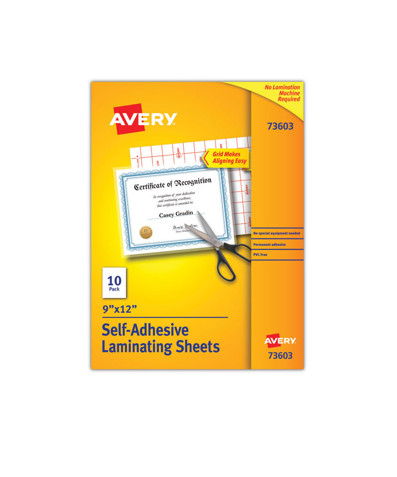 Easily, quickly and inexpensively laminate important documents, precious photos, valuable cards and more using these clear self-laminating sheets. Each laminate sheet is coated with permanent self-adhesive so you can effortlessly create professional quality laminations without having to fuss with lamination machines. Laminating is simple: use the included grid to size the document, place the document on the adhesive side of a laminating sheet, lay the second sheet with its adhesive side down to seal the other side of the document and trim the edges. Made from acid-free and archival safe material, you'll be able to preserve and protect documents, diplomas, artwork, photos, collector cards, signs, homemade crafts, stickers and more. You can even turn your laminated sheets into a dry erase board and use a dry erase marker to make notes on them directly. Whether you're a business professional, teacher, student, hobbyist or collector, you'll love how easy-to-use and inexpensive Avery lamination sheets are for all your quick laminating projects.
