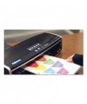 Lamination perfection in no time with rapid 30-60 second warm-up and robust six-roller system. Unique AutoSense system detects pouch thickness and self-adjusts to the optimal laminating setting. Rapid laminating speed of up to 53" per minute. Laminates hot pouches up to 10 mil thick as well as cold pouches. Feed IQ drives maximum productivity by alerting user when they can insert their next pouch. Advanced Pouch Tracking System auto-reverses document mis-feeds. Auto shut-off prevents overheating when not in use. Includes ImageLast™ starter kit with ten 3-mil letter-sized pouches.