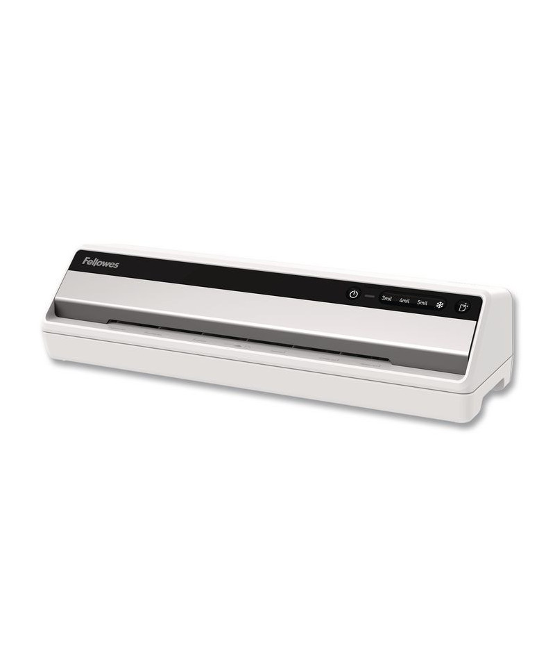 Fellowes Saturn 3i Laminator features a rapid one-minute warm-up with InstaHeat Technology. Accommodates multiple document sizes. Compatible with 3- and 5-mil hot-lamination pouches as well as self-adhesive cold-lamination pouches. Green light and audible beep indicate when machine is ready to laminate. Release lever disengages pouch for re-centering or removal. Auto Shut-Off saves energy and prevents overheating. Includes ImageLast starter kit with ten 3-mil letter-sized pouches. Perfect for use in the office, home office or school.