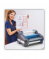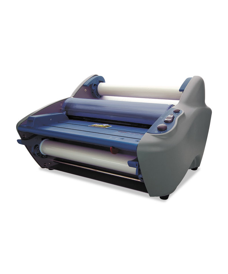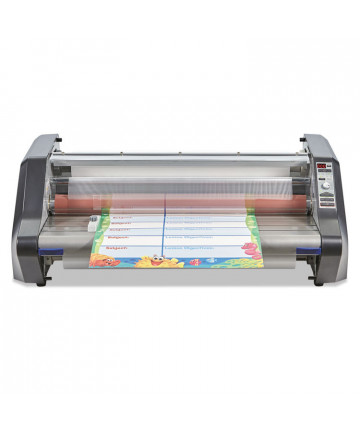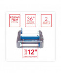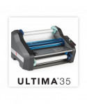 Perfect for educational settings, day cares, churches, and small offices, the Ultima 35 desktop roll laminator delivers high quality results and features EZ Load technology. EZ Load roll film ensures error-free film loading every time. One-touch AutoSpeed automatically adjusts the laminating speed for you, ensuring quality lamination on every project. Less than two minute warm-up time. Laminates at 36" per minute. Built-in trimmer and reverse function. Maximum document width of 12". Heat Shoe Accutherm™ heating technology promises flawless, consistent results. LED ready light. Auto standby after one hour and shut off after two hours of non-use. Laminator is compatible with GBC EZ Load blue end cap roll film: 1.7 5 mil thickness, 12" max roll width, 1" core.