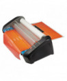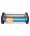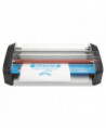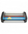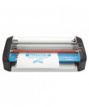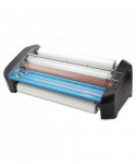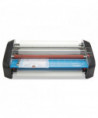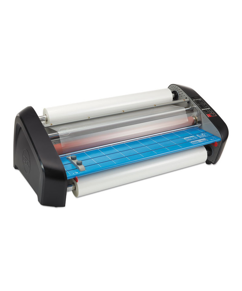 Ideal for posters and large format projects, the Pinnacle laminates documents up to 27 inches wide using 1 to 3 mil NAP I or NAP II roll film. Easy-to-use controls with two push button heat settings and LED indicators get you started quickly. Laminator warms up in eight to ten minutes and features a built-in footage counter. Laminates at a speed of 10 feet per minute to increase productivity. A convenient built-in trimmer and tray table with safety shut-off are also included.