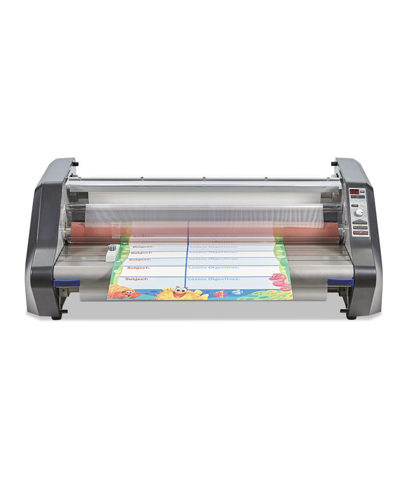 With the Ultima 65 laminator, it's easy to protect and preserve your most important printed teaching tools. The EZload film system makes loading fool-proof, while the pivoting feed table provides easy access for film changing. AutoGrip shafts make adding and removing standard film a breeze. All together, these features shorten film loading time by 50%, making this laminator the perfect choice for busy educators. 27" width is perfect for laminating classroom posters, charts and more. EZload film rolls are color coded for easy and accurate loading every time. Pivoting feed table eliminates the need to remove the table while loading.