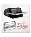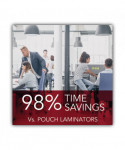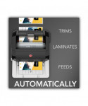 Introducing the world's first fully automatic desktop laminator with auto-cartridge! Foton 30 makes lamination as simple as pressing a button. This machine feeds, laminates and trims automatically, giving you time to multitask on other projects. Just place documents in the tray, press run and walk away. It will automatically start once warmed up. Plus, our 3-5 mil film cartridges are auto-threading for stress-free film loading. Simply drop the cartridge in the machine and close the lid. Three different mode options let you laminate letter size pages, oversize documents and odd shapes. Load up to 30 letter size sheets in the Auto-Feeder. Maximize productivity by laminating up to 230 documents per film cartridge. A sensor controls spacing to minimize film waste and prevent jams. Auto deskew straightens pages so they feed evenly. Additional features include auto shut off and mil thickness detection. 50-ft starter cartridge included.