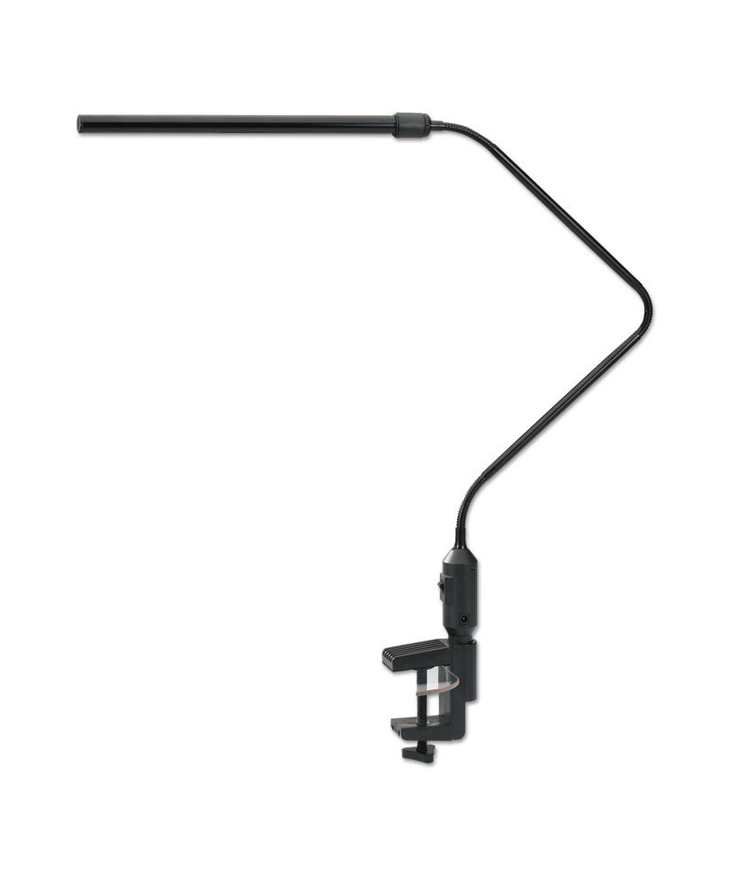 This slim LED lamp has an interchangeable base or clamp attachment, making it a space saving fixture that adapts to any workspace. The clamp secures firmly with the turn of a single knob. A two-point adjustable neck lets you position focused illumination where you need it most. This versatile desk lamp delivers steady, glare-free light for reading, working or crafting.