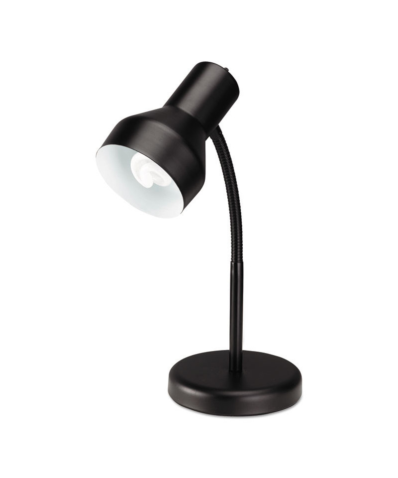 Make a smart, economical choice with these task lamps. Fully adjustable gooseneck arm to aim light where you need it most. Classic shade styling in matte black finish. Non-skid secure mounting clip or weighted-base options. Protective pads protect against surface marks or scratches. Rotary on/off switch conveniently located on base. Ideal for compact spaces. All metal construction for maximum durability. 13W CFL bulb is included.