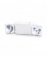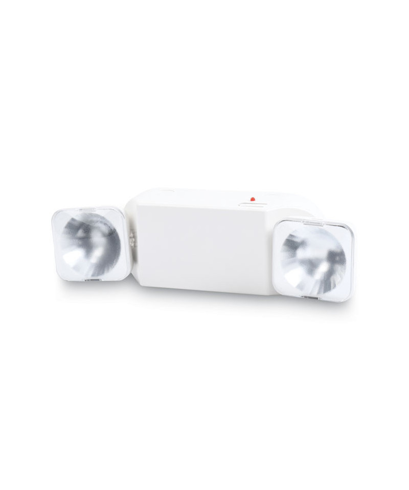 Twin-beam unit automatically goes on when power fails, providing 90 minutes of emergency lighting. Solid state automatic charger with combination LED pilot light/test switch. Attractive polycarbonate casing with swiveling heads. 120/277 volt input. Sealed maintenance-free battery lasts up to eight years.