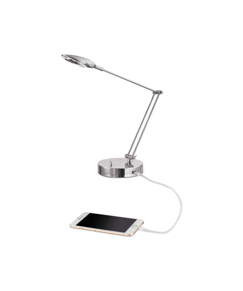 Sleek stylish look meets modern convenience in this adjustable swivel LED task lamp. Integrated USB port to charge up most devices. Contemporary three-point architect neck adjusts height and position easily to meet any lighting needs. Weighted base provides stability.