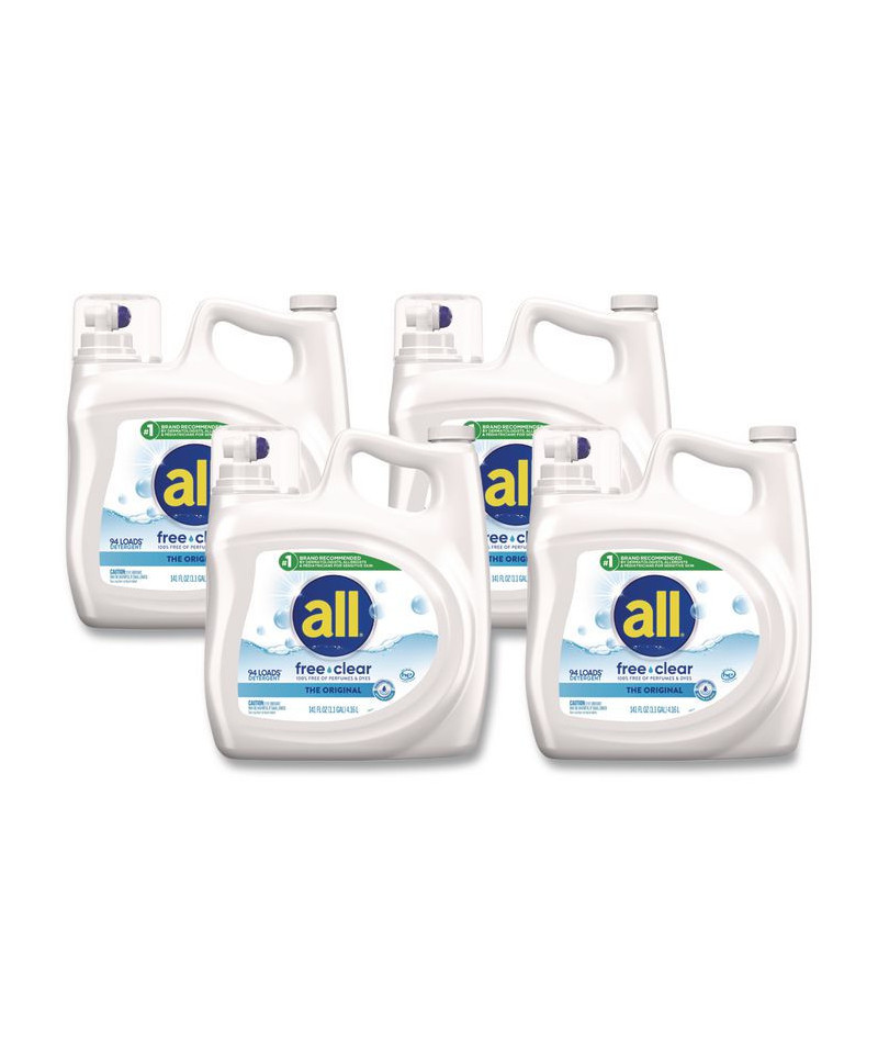 When it comes to laundry care for sensitive skin, all® Ultra Free Clear Liquid Laundry Detergent is the obvious choice. This hypoallergenic laundry detergent is the #1 recommended detergent brand by dermatologists, allergists and pediatricians for sensitive skin. 100% free of perfumes and dyes, all® free clear is hypoallergenic and gentle on sensitive skin. This unscented, fragrance-free detergent is safe to use in any washing machine including high efficiency (HE) and at any water temperature.