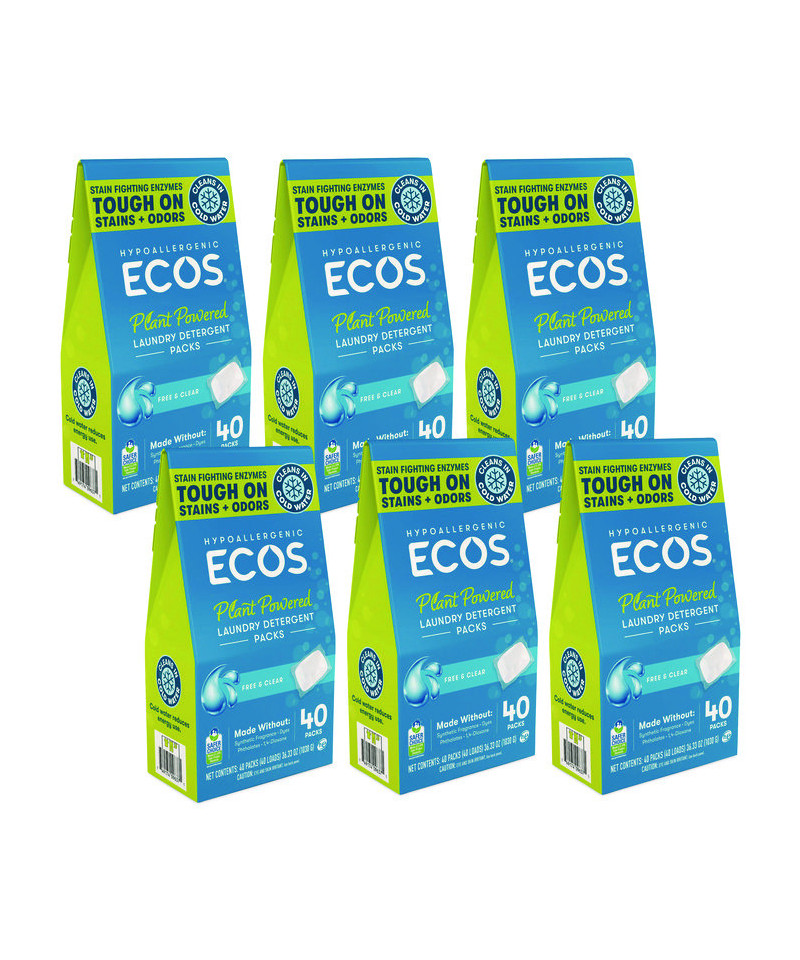 Redefining convenience, these sustainable, all-in-one laundry packs make washing a breeze. Our advanced, plant-powered formula harnesses the natural cleaning power of enzymes, which penetrate deep into fabric fibers to break down and eliminate stubborn stains, ensuring a thorough and effective clean with every wash. Say goodbye to sticky spills and hoisting heavy jugs, and elevate your laundry experience with ECOS the sustainable, convenient, and highly effective solution you've been searching for! Works well with all washing machines, temperatures, and cycles. 100% plastic free packaging reduces plastic waste, contributing to a sustainable future. Not tested on animals. Manufactured in a facility that is LEED Zero Carbon, LEED Zero Waste, and LEED Zero Energy Certified.