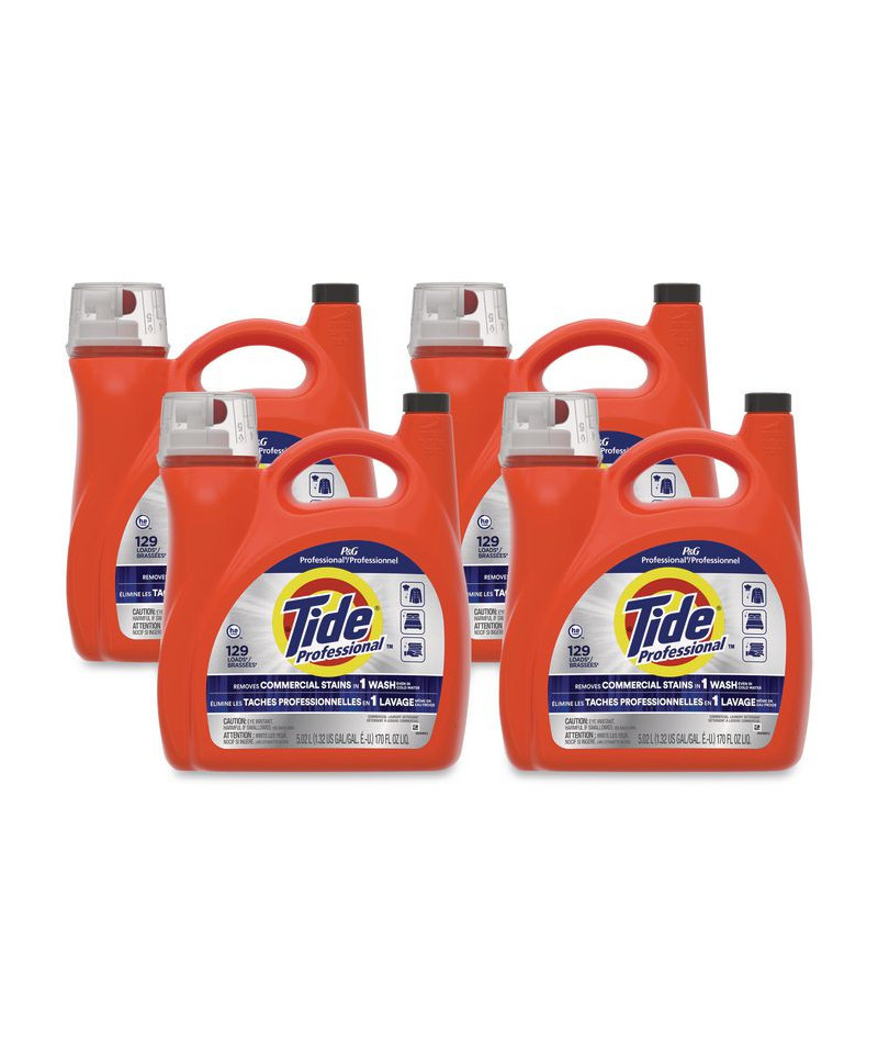 America's #1 Laundry Detergent - Now Formulated for Professionals. This Commercial Liquid Laundry Detergent is designed for businesses with high volume laundry washing needs, removing commercial stains in 1 one wash. Tide® PRO Commercial Liquid Laundry Detergent helps remove tough stains like food grease, hair and make-up products, coffee and more! Ideal for lodging, salon and spas, care homes and more. Tide® PRO is suitable for both commercial and residential washing machines. This is a bulk size detergent good for 129 loads.