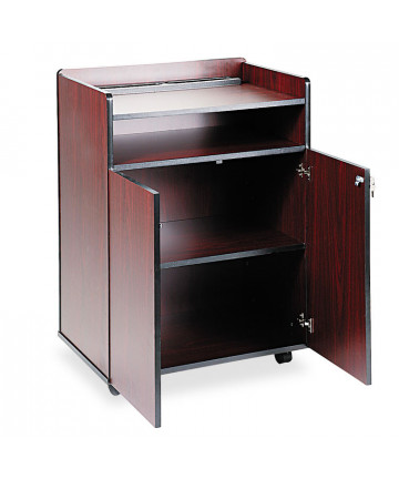 The #112 is an attractive and durable AV cart ideal for supporting presentation equipment like projectors. The sturdy cabinetry Includes a shelf with ample storage space and four easy-roll casters (two locking.) This unit conveniently also serves as a base for the OS Model #22 tabletop lectern in order to create a beautiful mobile full floor lectern.