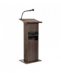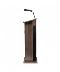 The Model #111PLS Power Plus is attractive, affordable and proven as a bestselling OS sound lectern. Its 30-watt amp is ideal for venues like smaller conference rooms, meeting halls, auditoriums and cafeterias. Features a 12.5W x 4.25D storage shelf which provides convenient storage. The unit includes a handheld mic with 9 ft cable and a factory-installed gooseneck mic holder, a tie-clip/lapel mic with 10 ft cable and an amplifier that works with OS wireless microphones. Multimedia capabilities include simultaneous usage with two wired and one wireless (optional) microphones. It operates by AC plug and features input jacks for CD players, extension speakers, recording outputs and playing MP3s.