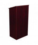 The #222 Full Floor Lectern is a dignified and durable unit made with stain and scratch-resistant thermofused melamine laminate over a particleboard core. Its cabinetry features a large reading surface with a convenient book stop as well as spacious shelf for storage. Includes protective floor glides Ships ready for easy assembly.