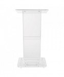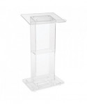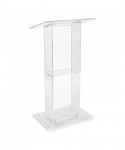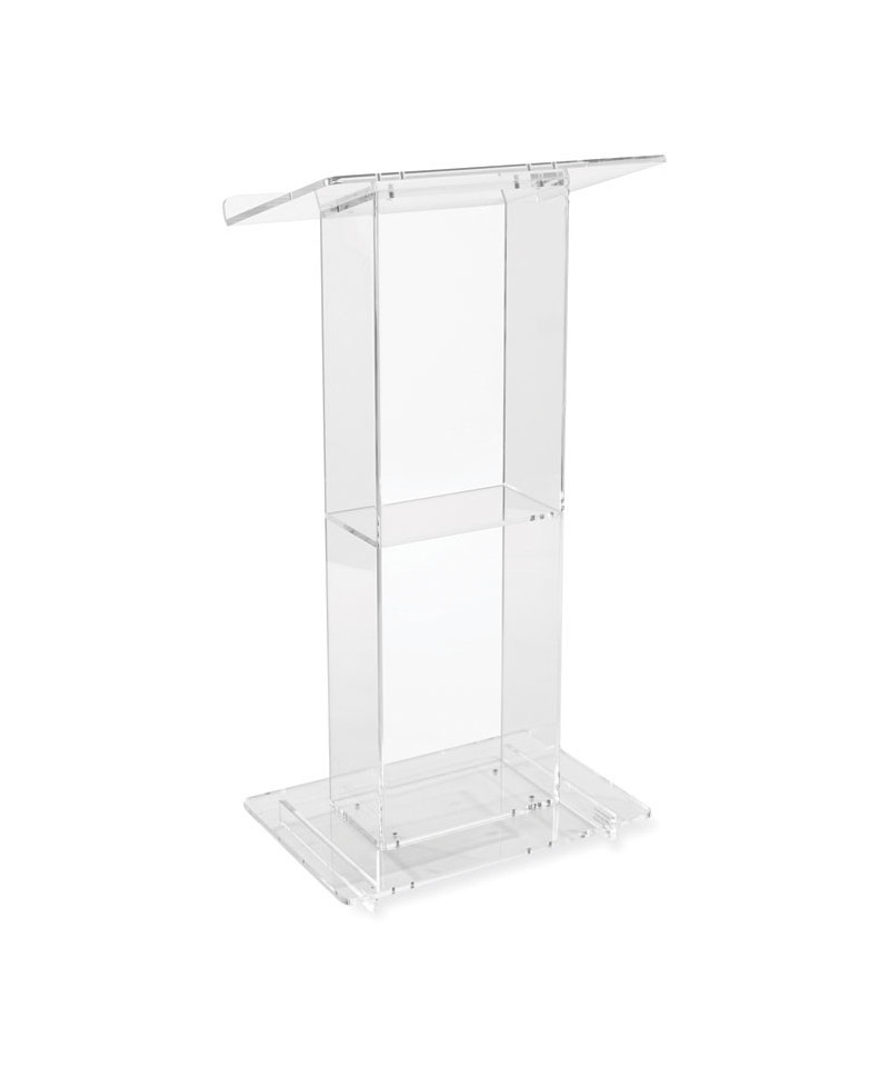 The Model #401S is a contemporary-style, transparent acrylic lectern with a convenient 14 x 8 shelf. Its structure is composed entirely of 0.5 and 0.38 thick acrylic plexiglass including a rectangular column and base, plus a broad 23.5 x 24 reading surface with book stop. Perfect in a worship setting or any environment that calls for an attractive, lightweight and truly unique fixture that will convey a sense of clarity and closeness between the elucidating speaker and audience.