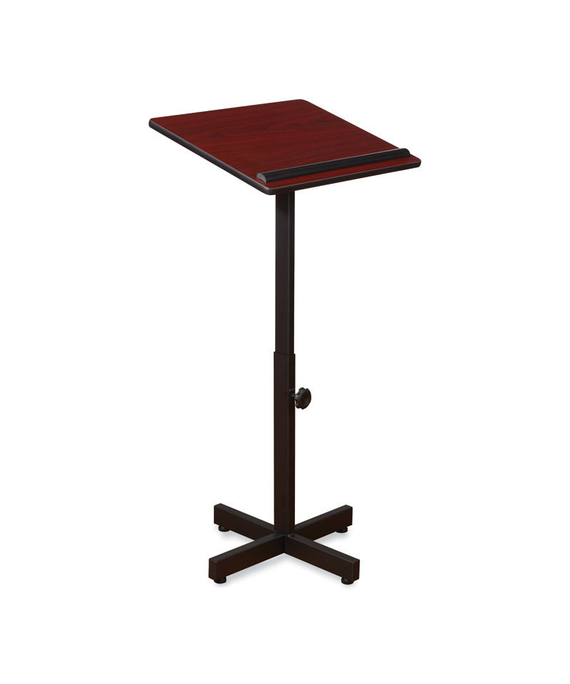 The #70 Lectern Stand is a reliable and inexpensive option with a practical application in virtually any public speaking venue. It features a black 16-gauge steel base which adjusts from 30 to 44 high to suit any speaker's stature. A generous 16 x 20 reading surface for presentation materials features protective T-mold edging and a helpful paper/book stop.