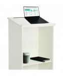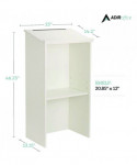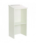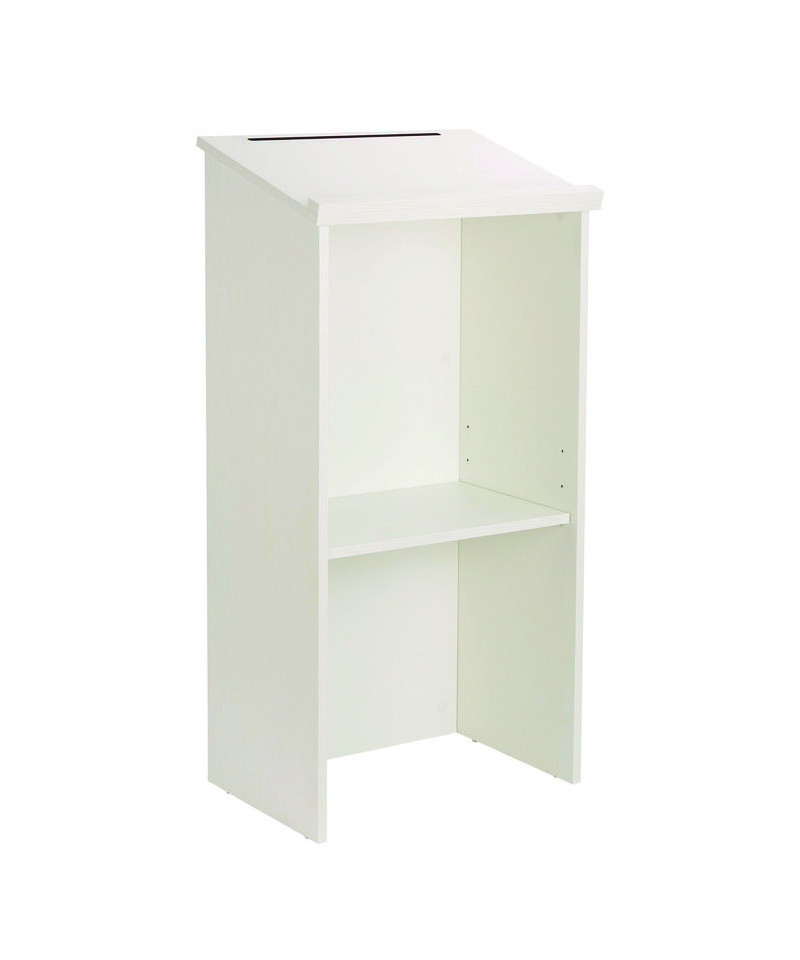 Add style to any presentation, while keeping things organized and running smoothly. The podium is constructed utilizing wood for long-term durability and use, offered in a laminate finish. Fused directly to the surface, each finish is heat-, moisture-, stain- and abrasion-resistant to keep it protected and ensure that it will last well into the future. The full-size reading surface includes a stylish molding on the bottom for holding all of your presentation material. It slopes at a 15° angle to make it easier to read, while a pencil slot at the top allows you to keep writing utensils handy in case the need arises. Inside, an open storage shelf provides space to store equipment, cases and supplies that you may need while making your presentation. It can also be used to store brochures, flyers or other reading material that you may want to hand out to audience members. With its professional look, this lectern is great for making a speech in any conference room, town meeting hall or religious establishment. It's also ideal to have in the classroom when giving a lecture or in a restaurant so the host/hostess can keep track of reservations and waiting lists. Best of all, this podium can be put together with a screwdriver and cam-locks. Floor glides are also included to protect floors from scratches and scuff marks, in addition to making it easy to move from one location to the next.