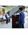 The Wood Mobile Presentation Lectern Stand with Shelves is an outstanding piece of furniture that combines style, functionality, and affordability, making it an excellent addition to any restaurant chain or private business. Its thoughtful design and economical price point make it a versatile and valuable investment for enhancing your presentation setup. This lectern stand is constructed with a top shelf, featuring backing and side panels that ensure your presentation notes or items stay securely in place. This design element prevents any accidental falls, allowing you to maintain a smooth and professional flow during your presentations. Whether you're speaking to a small group or a larger audience, you can confidently place your materials on the top shelf without worry. The tray storage display on this lectern stand is another practical feature, offering two open areas at the back of the podium. These storage spaces are perfect for placing various items such as glasses, bowls, or other supplies you may need during your presentation. This convenient storage solution helps keep your workspace organized and clutter-free, ensuring that everything you need is easily accessible. Crafted from MFC (Melamine Faced Chipboard) wood, this lectern stand boasts a durable and robust construction. The melamine finish not only adds to its visual appeal but also provides a protective layer that enhances its longevity. This ensures that the lectern can withstand the rigors of daily use in busy environments, maintaining its quality and appearance over time. The combination of style and durability makes the Wood Mobile Presentation Lectern Stand with Shelves a reliable choice for any setting. Its elegant design complements a variety of decor styles, while its practical features cater to the needs of busy professionals. Whether you're using it in a restaurant, office, or other business setting, this lectern stand is sure to meet your needs and exceed your expectations.