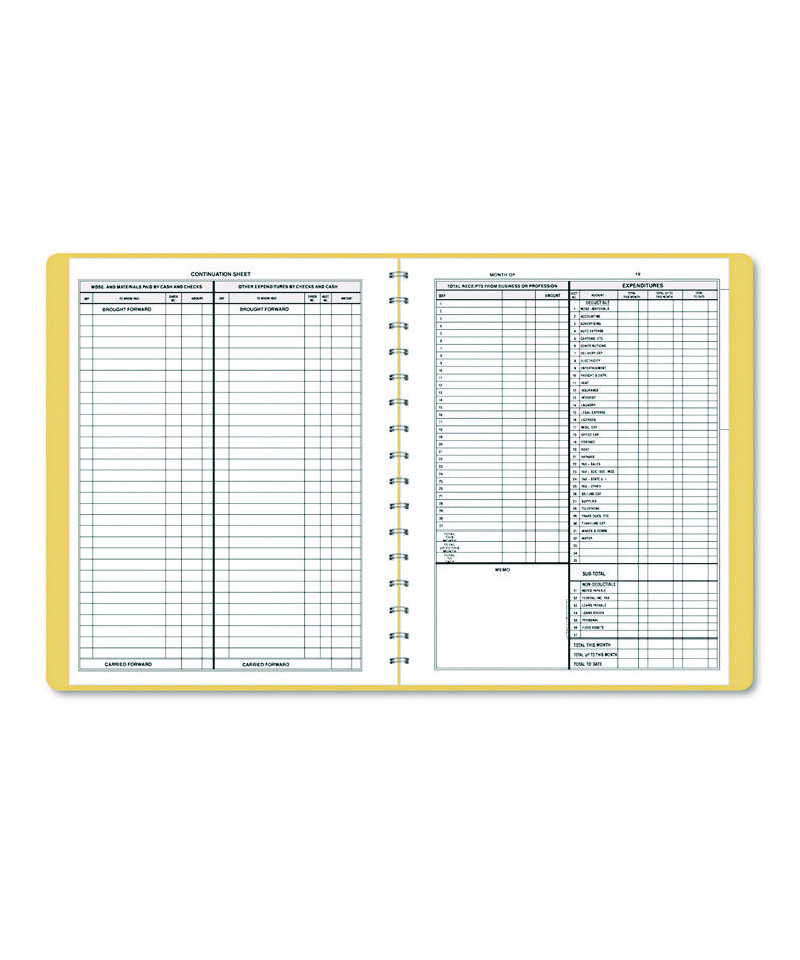 The perfect cash record keeping system for small and home-based businesses. Features a calendar of important dates and record of cash received and paid out, net profit and net worth. Filled in specimen page offers a convenient guideline. Includes payroll section for up to six employees. 4" columns. Wirebound vinyl cover. Undated—start anytime; good for one year. Unnumbered pages.