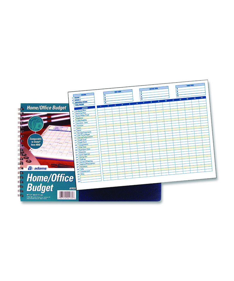 Keep track of your income and expenses. Featuring easy-to-read, multi-colored formatting to help reduce eye strain, Adams® Home/Office Weekly/Monthly Budget Book helps you track your investments as well as tax, insurance, healthcare, building improvement, mortgage/rent, grocery and gas expenses. A wide, landscape orientation and two-page layout provide plenty of space to account for everything. Bank reconciliation worksheets in back help you verify your account balances. Twin-wire binding allows the book to lie flat when open, so the rows neatly align across each two-page spread. Moisture-resistant, heavyweight poly cover protects the interior pages from accidents.