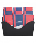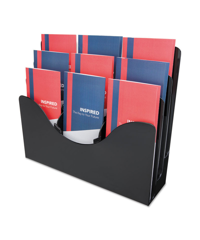 Finally a product that adjusts to your storage needs. This patented configurable display can hold a combination of magazine and leaflet/pamphlet size literature. Also accommodates letter, legal and A4 documents. Each pocket holds up to 1" capacity. Ribs at the bottom eliminate drooping. Organizer lies flat or stands upright on desktop/counter to conserve space. Also wall mountable. Includes six removable dividers to create up to nine compartments.