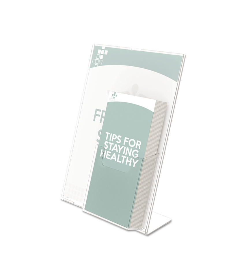 These convenient, easy-to-use sign holders feature a transparent design that offers full visibility to your message. Perfect for any retail or commercial setting, these sign holders attract attention and are an effective way to communicate, protect and display information in a way that's easy to use. Whether you're advertising daily specials, promoting and event or delivering a message, these sign holders will grab your customer's attention. This durable thick paneled sign holder features rounded edges and is sealed on three sides to keep your sign clean, protected and secure. Slanted face for easier readability.