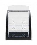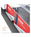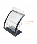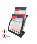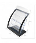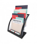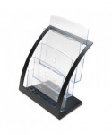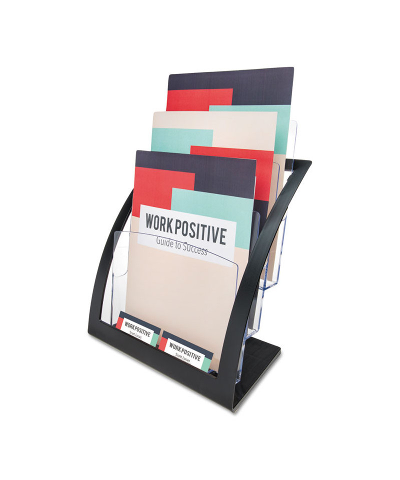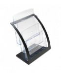 This freestanding, desktop literature holder, offers a sleek, high-end alternative to traditional holders, and features a contemporary design with three, tiered pockets for maximum literature capacity and visibility. Each pocket holds up to 1" of literature, with additional space in front to hold business cards. Sturdy plastic construction with the look of metal. Ideal for lobbies, trade shows and waiting rooms.