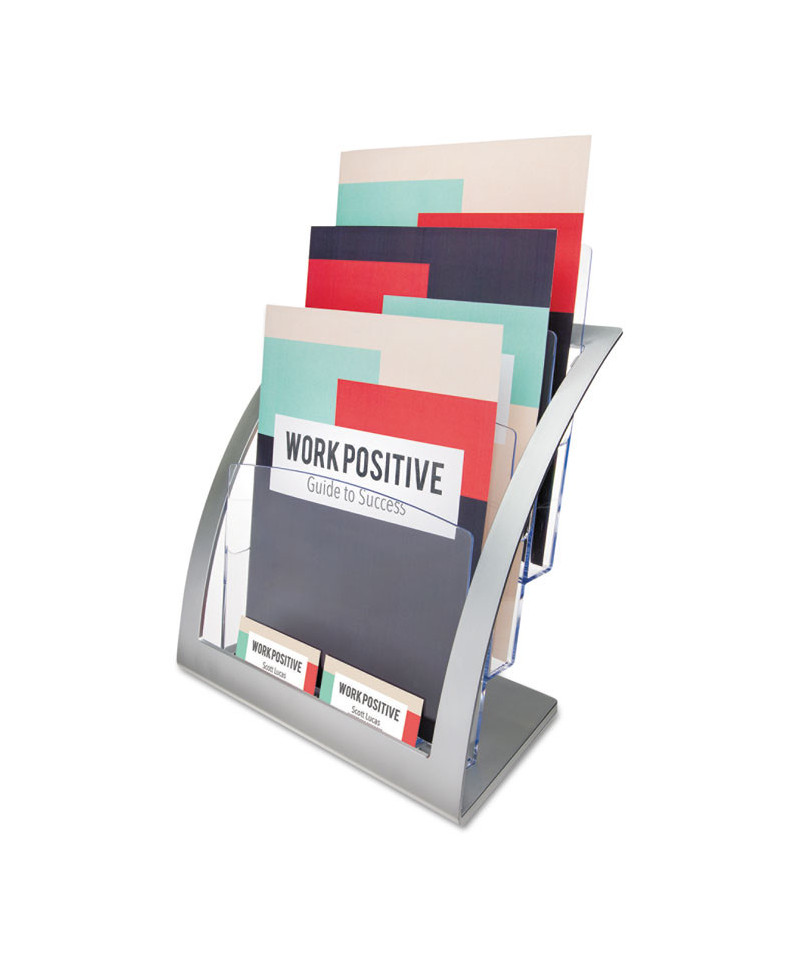 3-Tier Literature Holder, Leaflet Size, 11.25w x 6.94d x 13.31h, Silver