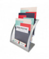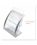 This freestanding, desktop literature holder, offers a sleek, high-end alternative to traditional holders, and features a contemporary design with three, tiered pockets for maximum literature capacity and visibility. Each pocket holds up to 1" of literature, with additional space in front to hold business cards. Sturdy plastic construction with the look of metal. Ideal for lobbies, trade shows and waiting rooms.