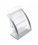 A contemporary design for more upscale decor. Three separate compartments hold up to 1" of material each with additional space for business cards. Ideal for tradeshows, reception areas and waiting rooms.