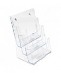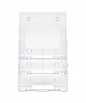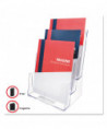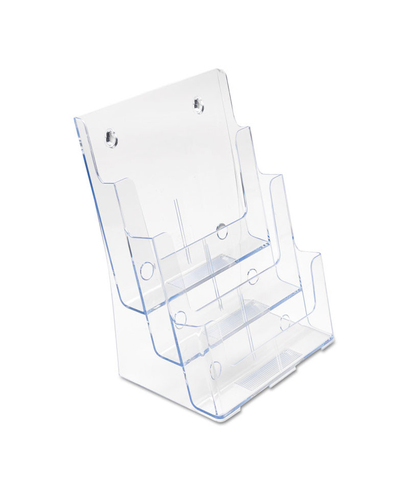 Clear, compact, multi-compartment literature holder with tiered design offers better visibility and space efficiency. Angled design keeps your materials at just the right angle for easy access. Ideal for use in financial institutions, government buildings, medical offices, lobbies, libraries and more. Use this durable, plastic literature holder as a stand-alone display on countertops, or mount on a wall to put the focus on your materials. Wall mounting hardware not included.