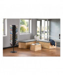 Perfect for reception areas or waiting rooms, this contemporary rotating literature rack offers 360° access, making it easy to view and organize all your brochures, pamphlets, and magazines. Designed with 1" capacity pockets, it accommodates a variety of materials while keeping them neat and accessible. Its sleek steel mesh construction is both durable and modern, while the black powder coat finish ensures long-lasting quality. This stylish and functional rack is a great addition to any professional setting, helping to keep your space tidy and your materials easily reachable.