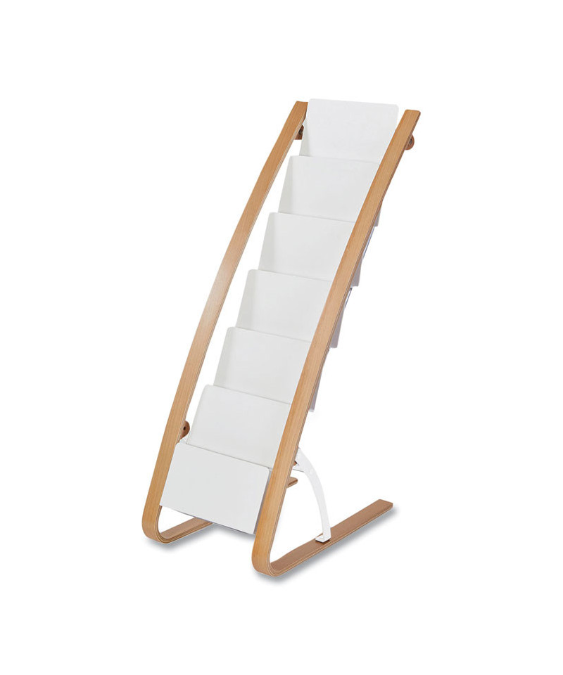Who says your literature rack has to be boring? The combination of metal and plastic offers a unique and elegant design, with clean and updated lines. Its compartments provide immediate identification of documents. Large base with non-slip pads offers extreme stability.
