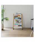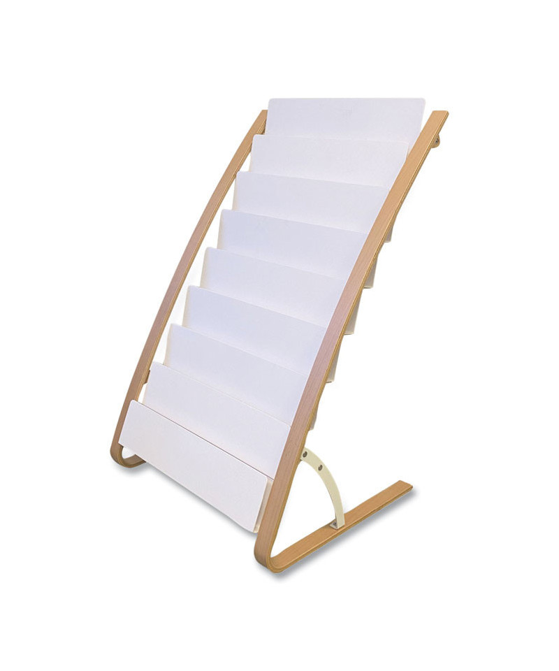 Who says your literature rack has to be boring? The combination of metal and plastic offers a unique and elegant design, with clean and updated lines. Its compartments provide immediate identification of documents. Large base with non-slip pads offers extreme stability.