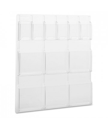 Clear plastic holder puts the focus on your literature. Rounded edges offer a smooth, clean appearance, and slightly angled back keeps your materials at just the right angle for easy access. Countertop or wall mount options make this a perfect product for nearly any decor. Non-slip grooves keep literature from sliding. Classic, economical literature holder for use in lobbies, restaurants, libraries and more.