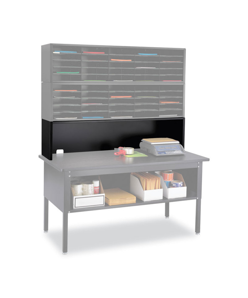 The E-Z Sort® Riser is a versatile and durable modular solution for any mailroom or workspace. Designed to support one or more modules, it can also be used on a table to accommodate postage meters, scales and off-surface computer storage. Built from heavy-gauge steel, the riser is finished with a powder coat for added durability and a sleek, professional look. With cable management cutouts, it helps keep your workspace tidy and organized by allowing easy routing of wires and cables. Perfect for improving efficiency and maximizing space, the E-Z Sort® Riser is a must-have for any office or mailroom setup.