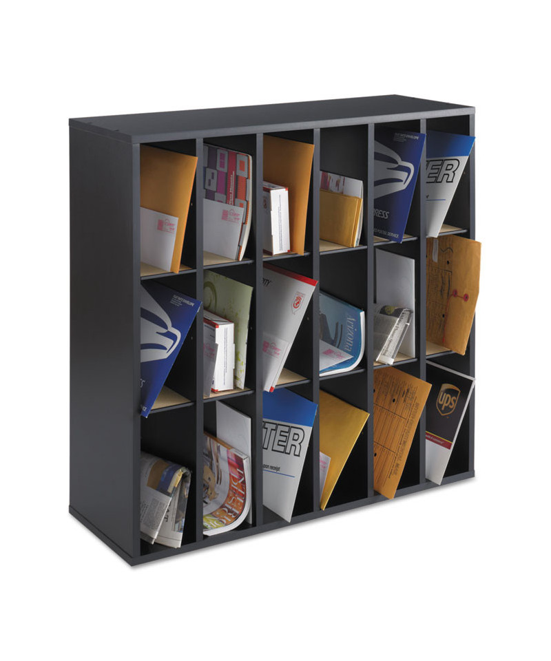 Wood Mail Sorter with Adjustable Dividers, Stackable, 18 Compartments, 33.75 x 12 x 32.75, Black