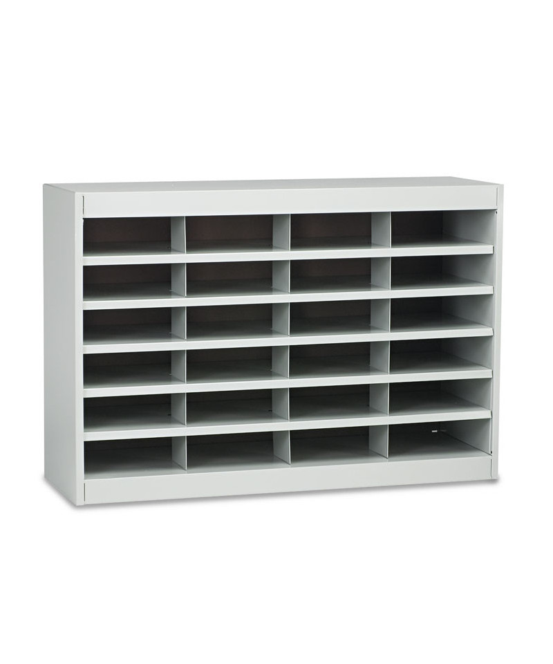 Safco E-Z Stor Literature Organizer, Multi-Compartment helps you sort, store and organize letters, literature and documents quickly and easily. Quick-connect, uni-lock steel shell, shelves and dividers stand up to heavy use year after year. Powder coat finish helps resist chipping and scratching for a long-lasting professional appearance. Compartments each hold 750 sheets of paper or up to 10 lbs. Organizer can be placed on the floor, a desk or mounted on a wall with E-Z Stor Wall Mount Bracket 8200, sold separately. Ideal for use in mailrooms, printer rooms, classrooms, offices and mailing centers.