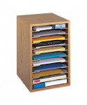 Wood Vertical Desktop Sorter, 11 Compartments, 10.63 x 11.88 x 16, Medium Oak