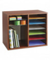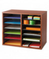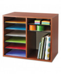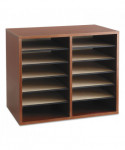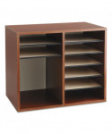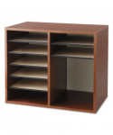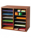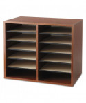 Ideal for desktop literature organization. Shelves are adjustable or removable to customize compartments for document, binder and office supply storage. Ten hardboard shelves form up to twelve 9w x 11 1/2d x 2 3/8h letter-size compartments and support up to 15 lbs. each. Made of 1/2" compressed wood with laminate finish; solid fiberboard back.