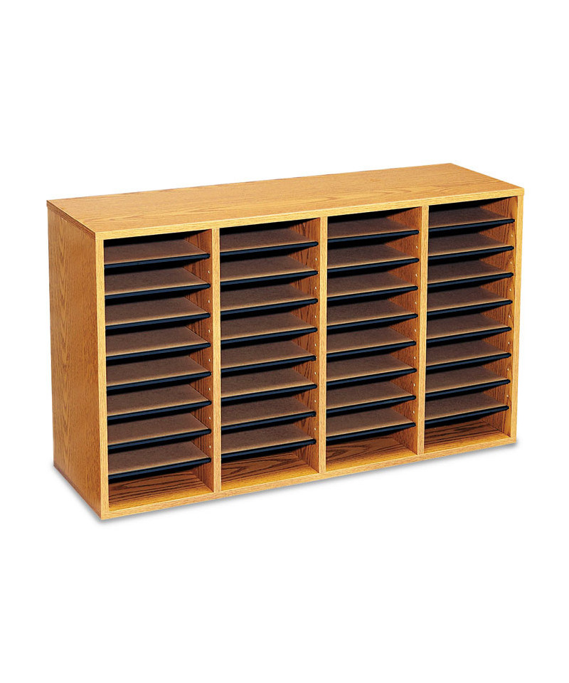 Wood/Laminate Literature Sorter, 36 Compartments, 39.25 x 11.75 x 24, Medium Oak