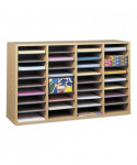 Versatility and durability come together in this efficient organizer. Cabinet is 5/8" compressed wood with laminate finish. Shelves form 9"w x 11 1/2"d x 2 1/4"h letter-size compartments, adjustable in 2 1/2" increments. Black plastic molding complements finish and doubles as a convenient labeling area (labels included). Each hardboard shelf holds up to 15 lbs. Mix and match stackable units. 39 1/4" units stack up to three high or 72 compartments. Solid fiberboard back.