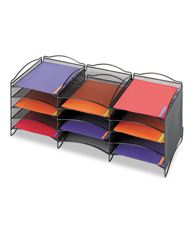 Onyx Steel Mesh Lliterature Sorter, 12 Compartments, 30 x 12.75 x 11.25, Black