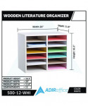 Wood Adjustable 12 Compartment Literature Organizer, 12 Sections, Letter Size, 20 x 11.8 x 16.3, White