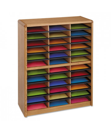 Keep your classroom or office clean and organized with this classroom file/literature organizer. The compact organizer and folder slot storage system includes open slots to store papers and folders. This provides enough room to easily slide a stack of papers, magazines, notebooks, or slim binder into each slot without taking up too much space. The sturdy cabinet is built to last with a durable design and strong shelves that can easily carry the weight. Plus, you can assign slots by name, project, or year simply by placing a labeled sticker on the innovative slot tab.