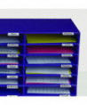 Maintain a clean and organized environment in your classroom or office with the AdirOffice Classroom File/Literature Organizer. This compact yet efficient storage solution features multiple open slots specifically designed to neatly store a variety of items such as papers, folders, magazines, notebooks, and slim binders. Each slot provides ample space, allowing for easy insertion and removal of documents without cluttering your workspace. The organizer is constructed from high-quality cardboard, ensuring that it is exceptionally durable. Its robust design and strong shelves can comfortably support the weight of your stored items, providing a long-lasting and reliable organizational solution. Additionally, the AdirOffice File/Literature Organizer includes innovative slot tabs that can be easily labeled with stickers. This feature allows you to assign slots according to names, projects, or years, making it simple to categorize and retrieve your documents. Whether you are managing a busy classroom or a bustling office, this file sorter helps you maintain a tidy and efficient workspace, enhancing your productivity and organization.