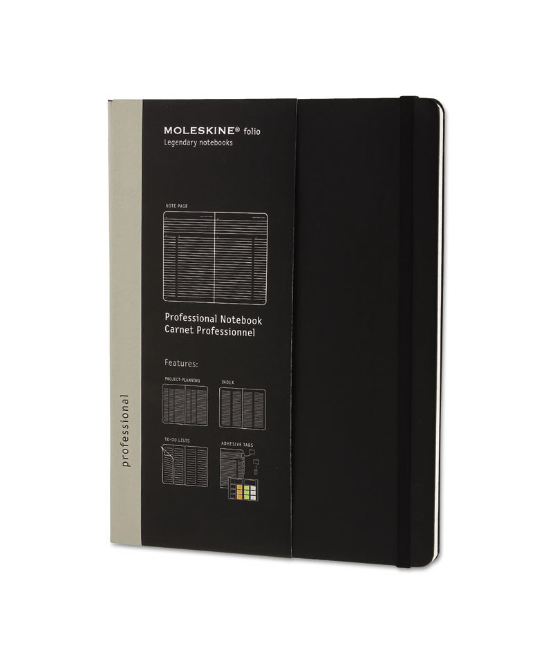 Available in a variety of colors, this notebook contains everything today's professional needs to stay organized. The simple graphic layout is designed for taking notes in meetings while special sections are useful for planning projects and keeping track of important lists. Each book comes with rounded corners, acid-free paper, bookmark ribbon, elastic closure and expandable inner pocket that contains the Moleskine history inside.